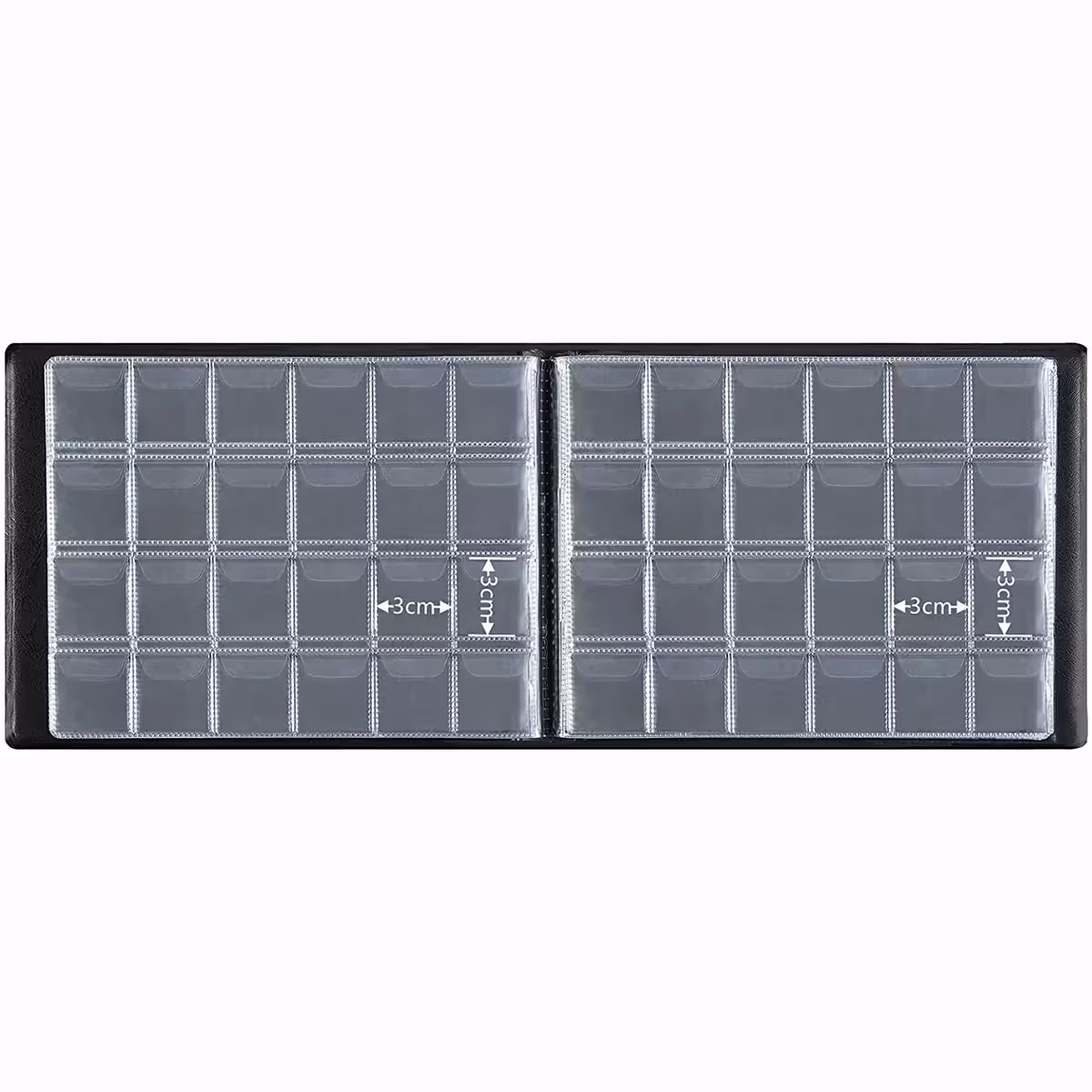Esta carpeta para monedas está especialmente diseñada para almacenar y organizar de manera eficiente monedas, fichas, medallones o placas de tu colección personal. Cada compartimento tiene un tamaño aproximado de 3 cm x 3 cm, adecuado para monedas con un diámetro de hasta 2,8 cm.
