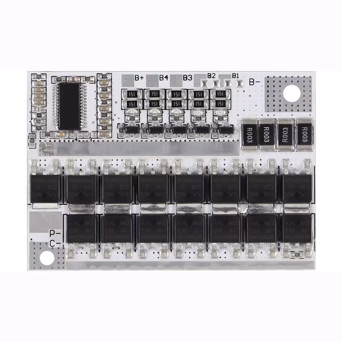 El módulo BMS 5S 100A ofrece protección completa para 5 celdas Li-Ion 18650 conectadas en serie, asegurando balance, protección contra sobrecarga, descarga profunda, cortocircuito y sobrecorriente.