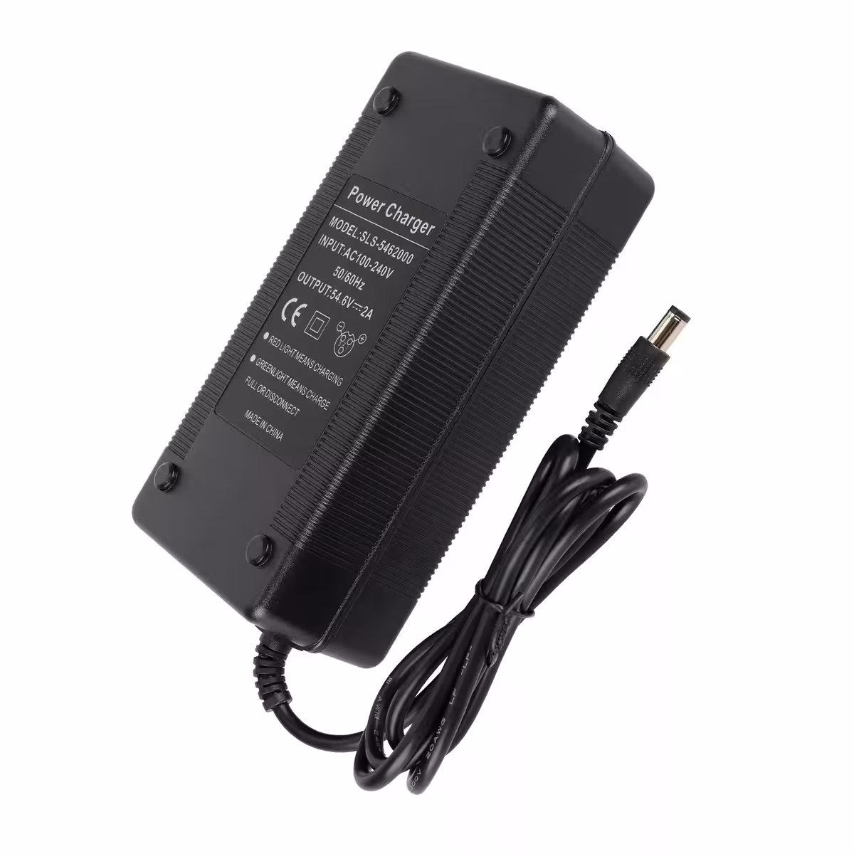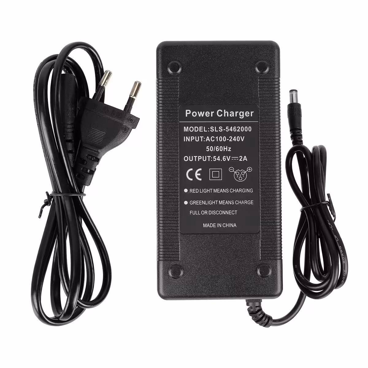 Proporciona un voltaje de salida de 54.6V y una corriente constante de 2A, asegurando una carga rápida y segura, con protección de la batería y mayor vida útil.