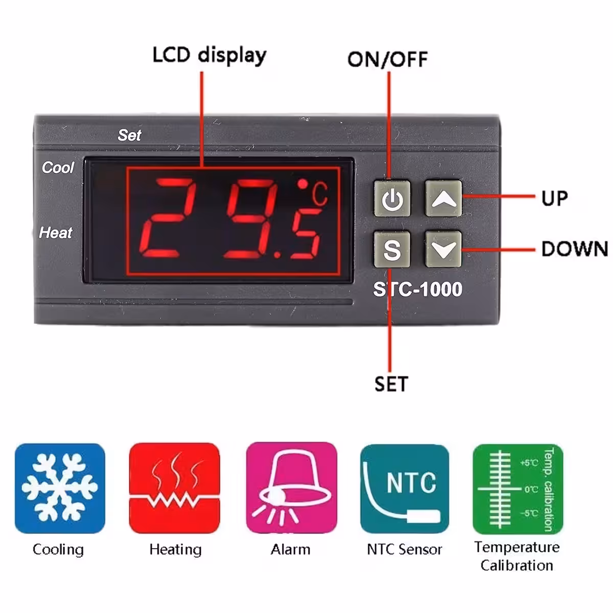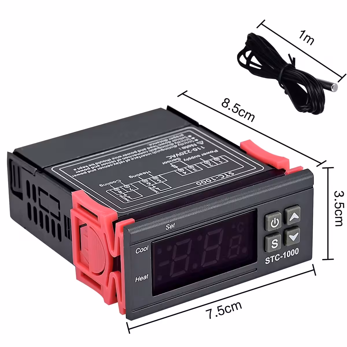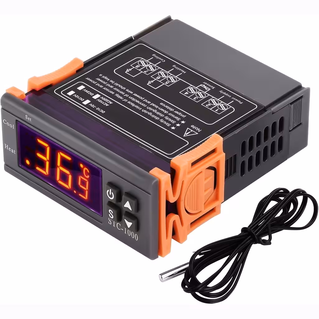 STC-1000 es uno de los controladores digitales de temperatura más populares, ideal para proyectos HVAC, refrigeradores, cámaras frigoríficas, fermentación, control de radiadores y aplicaciones industriales. Funciona con alimentación AC 110–220V y ofrece un control preciso entre -50 y 99°C, utilizando un sensor NTC 10K impermeable.