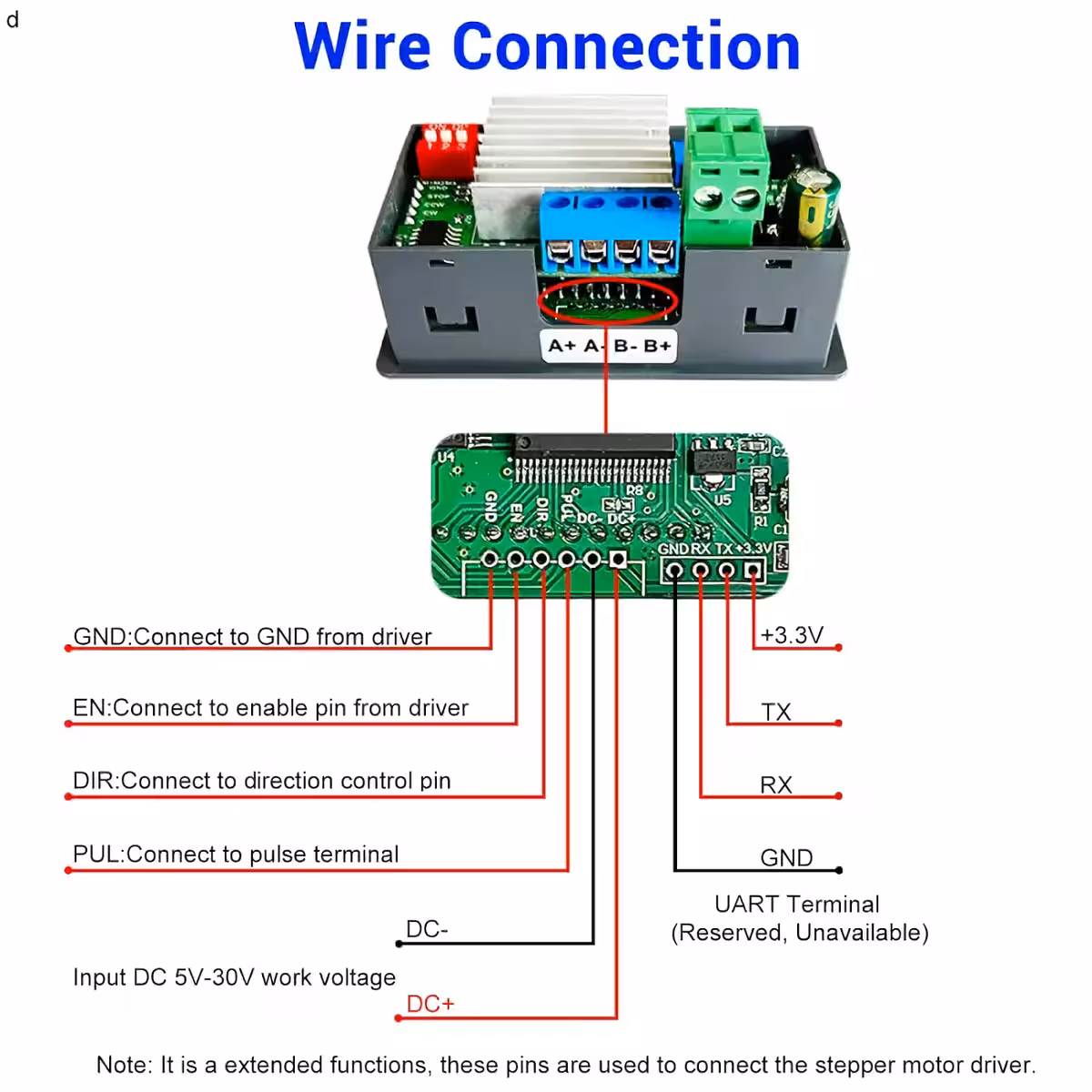 - Compatible con motores paso a paso de 2 fases, sin importar el número de cables (4, 5, 6 u 8).