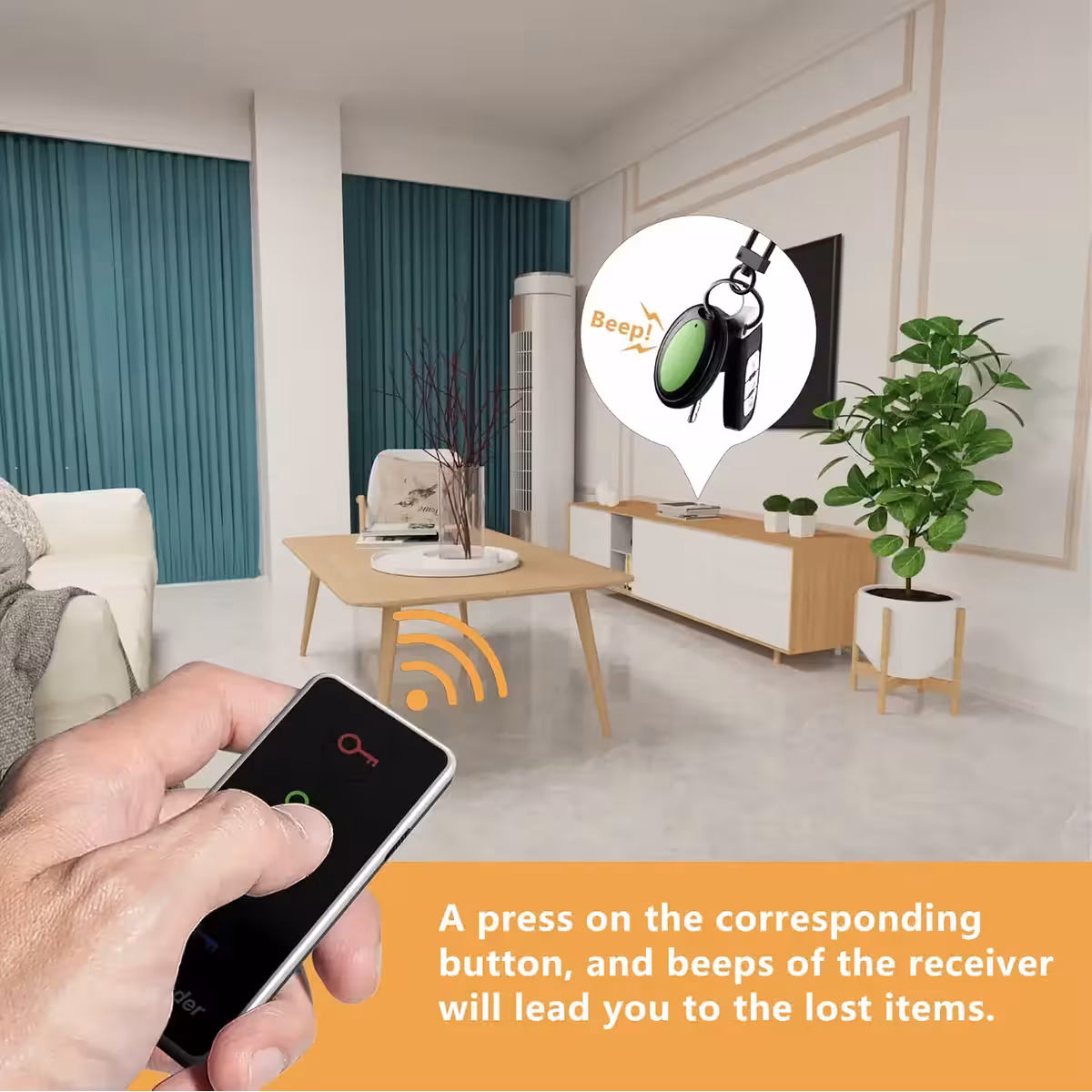 Funcionamiento sencillo: Presiona el botón deseado en el mando a distancia y el receptor correspondiente emitirá una señal sonora y luminosa para localizar rápidamente los objetos asociados.