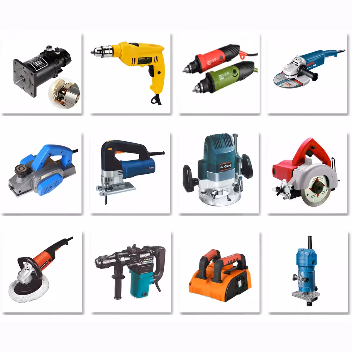 - Herramientas eléctricas: taladro, amoladora, esmeril, sierra, lijadora