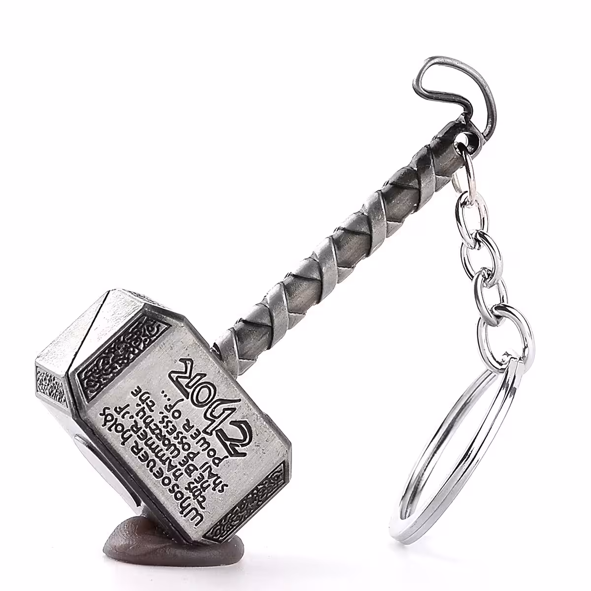 El llavero Martillo de Thor Mjolnir es un símbolo de fuerza y coraje, perfecto para completar tu colección de objetos Marvel o para regalar a un apasionado del universo de cómics y películas.