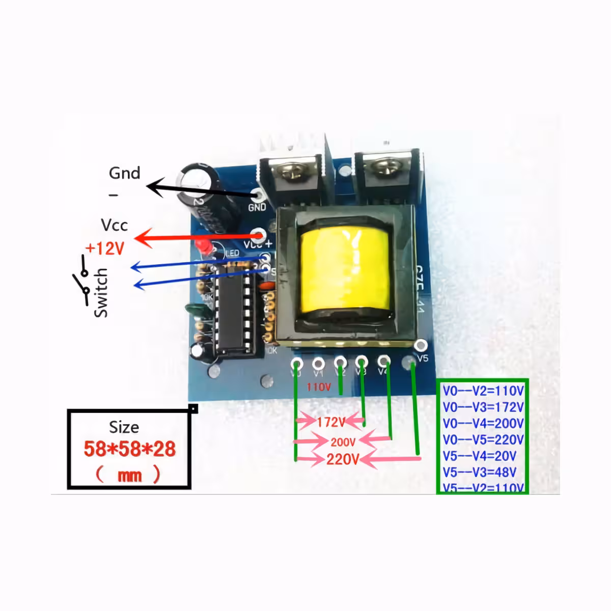 | V0 – V5 | 220V |