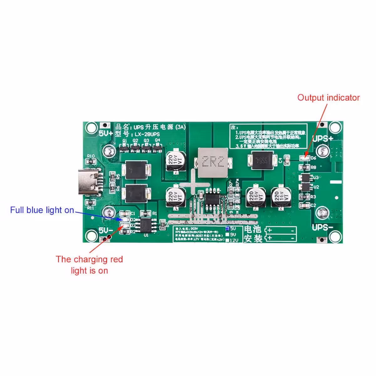 Módulo UPS Mini – salida 5V/3A o 12V/1.2A, alimentación ininterrumpida para proyectos electrónicos