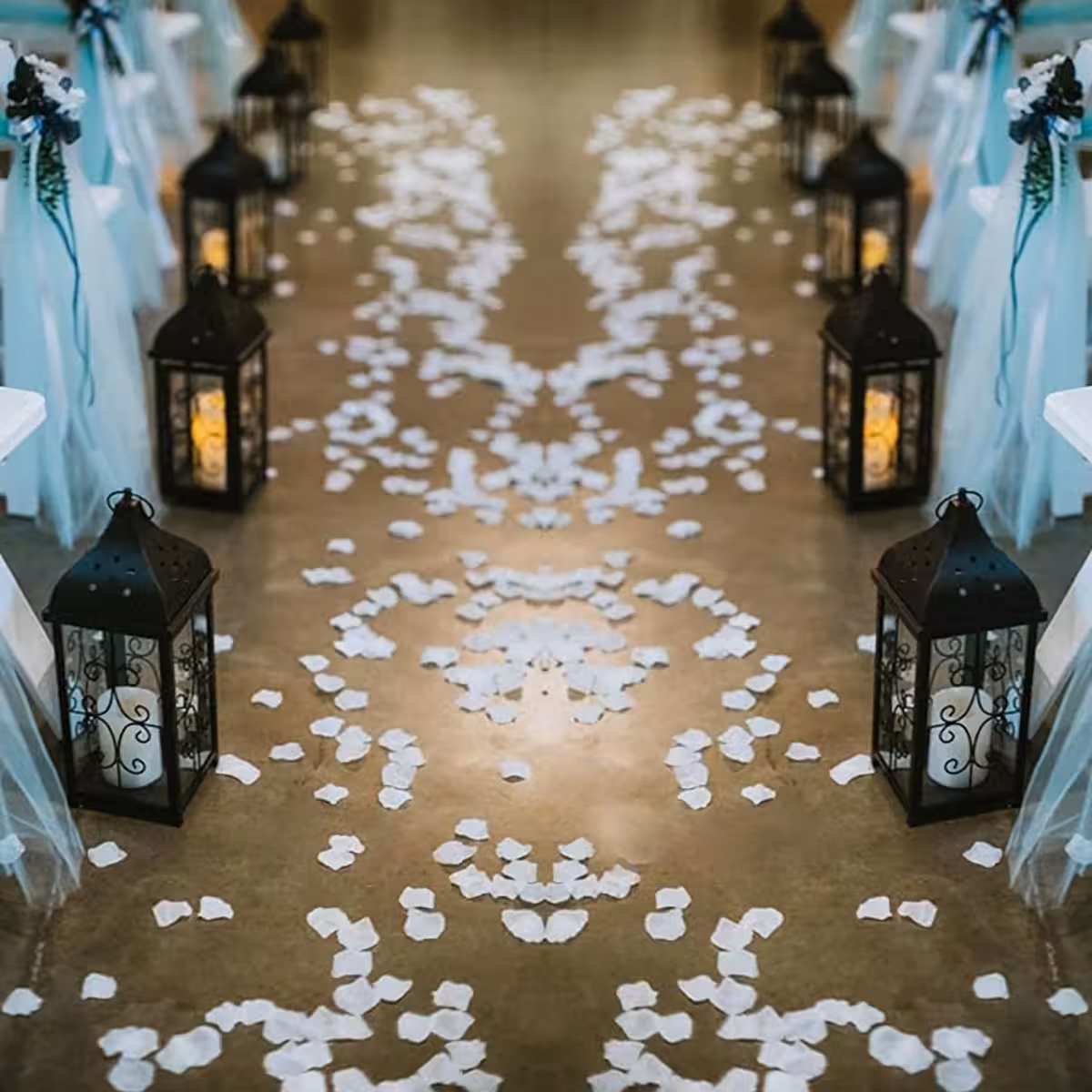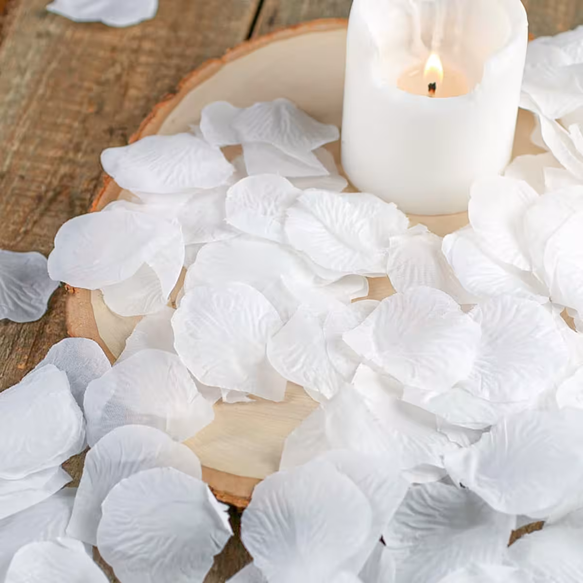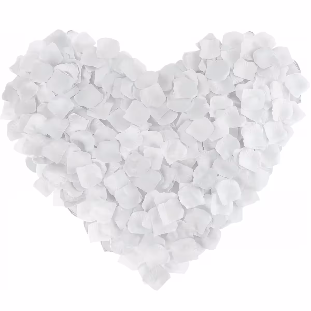 - 1 × Bolsa con 500 pétalos de rosa artificiales blancos