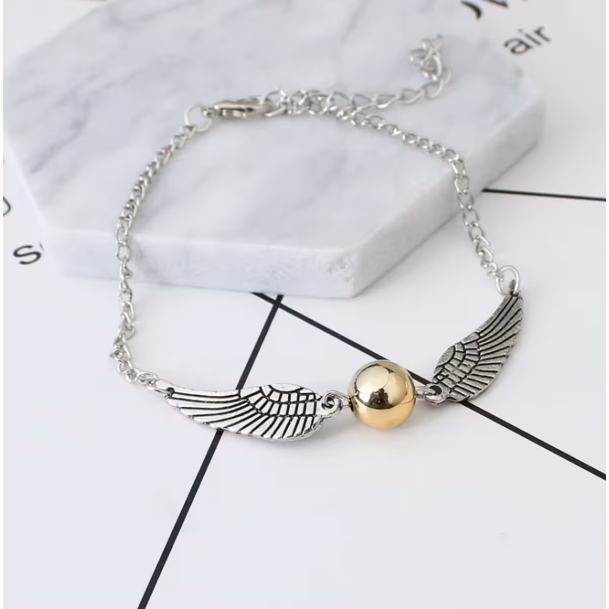 Esta pulsera inspirada en el universo de Harry Potter es una elección ideal para los fans de la mágica historia. Su diseño único incluye los símbolos legendarios: Hotoaica dorada (Golden Snitch) y Deathly Hallows (Reliquias de la Muerte), representando la herencia de los verdaderos magos.