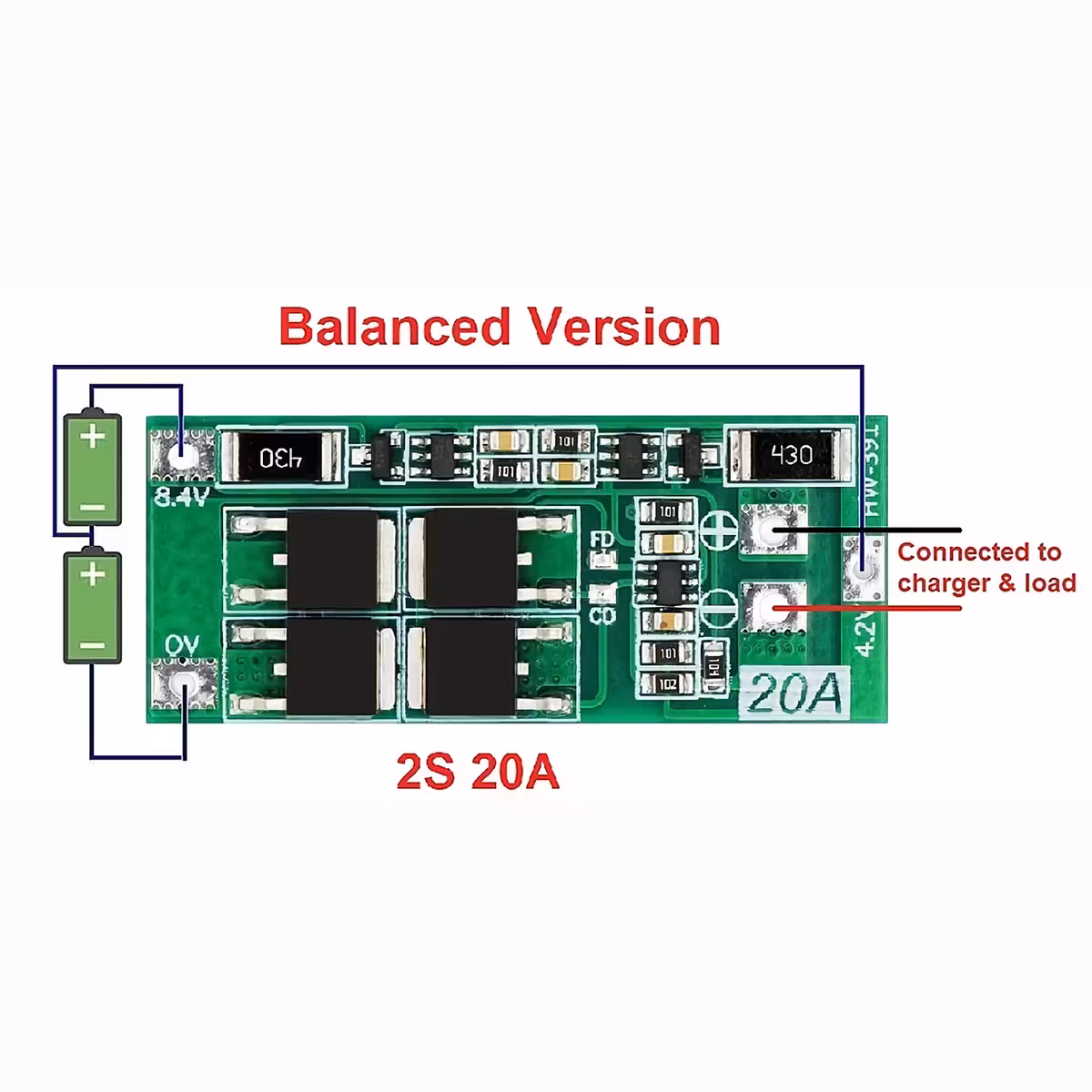 BMS 2S 20A con balance para paquetes Li-Ion 7.4V (set de 2 piezas)