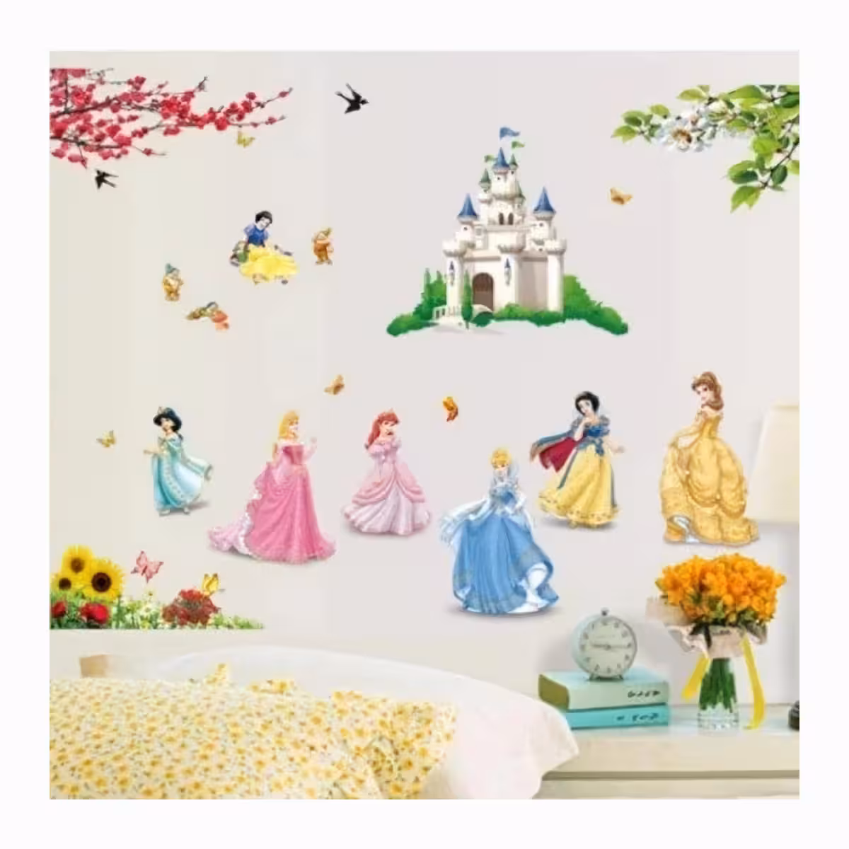 ¿Buscas un cambio nuevo y creativo? Transforma la habitación de tu hijo en un escenario de cuento de hadas con estas pegatinas decorativas de princesas Disney en el castillo. ¡Perfectas para niñas que aman el mundo mágico de las princesas!