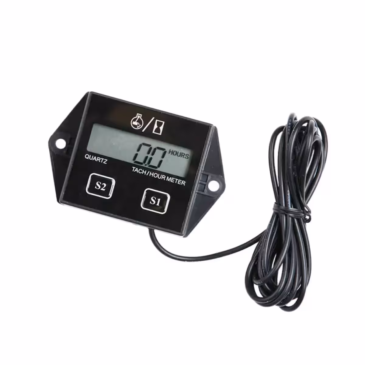 Tacómetro digital y contador de horas de funcionamiento – un dispositivo esencial para motores de gasolina de 2 o 4 tiempos. Permite medir las revoluciones del motor en tiempo real y registrar las horas de uso, siendo ideal para el mantenimiento preventivo.