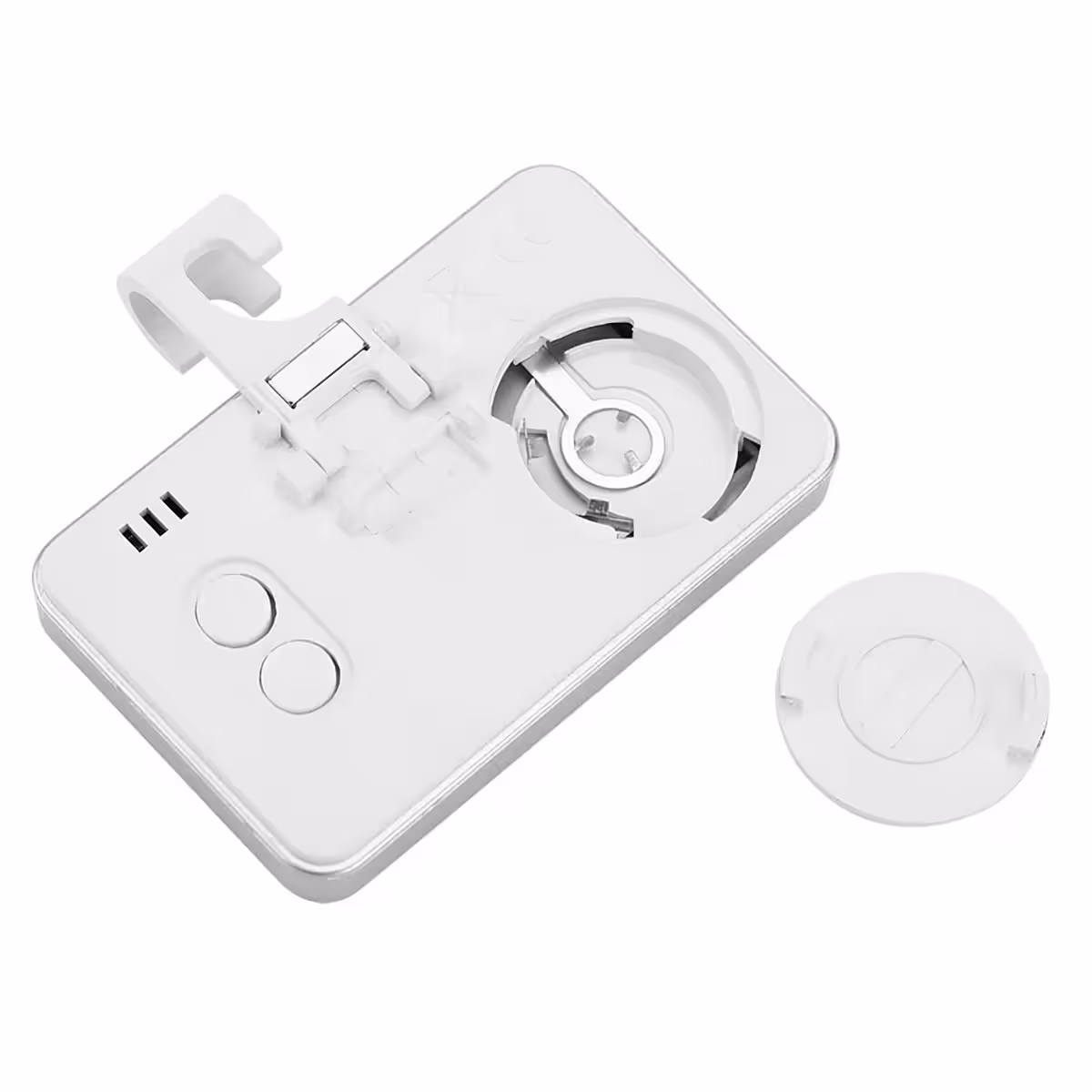 Montaje flexible: cuenta con 3 métodos de instalación – soporte plegable para mesa, gancho para estantes, imán para superficies metálicas.