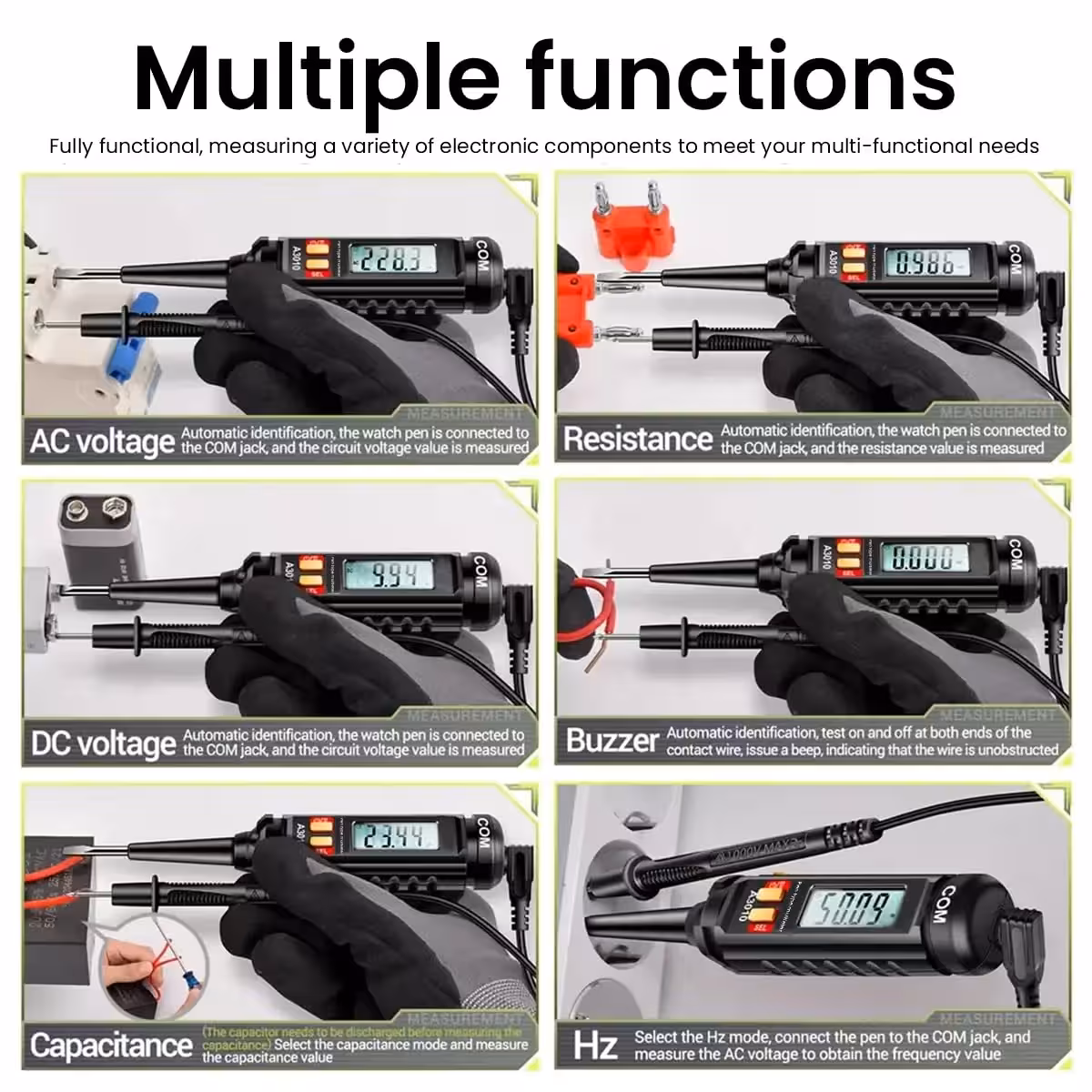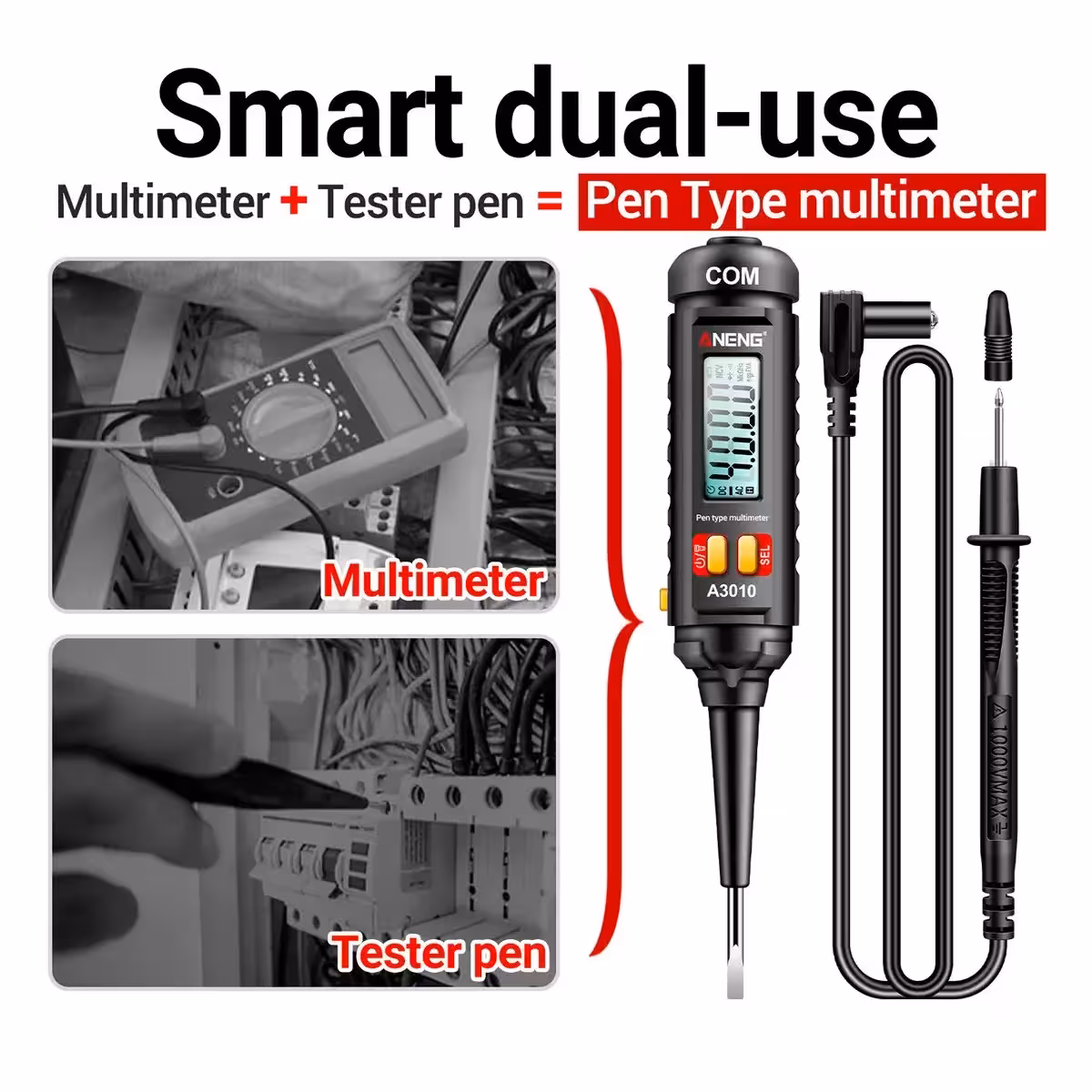 Descubre un tester de voltaje multifuncional ideal para diagnóstico automotriz, proyectos eléctricos DIY y reparaciones domésticas. Este lápiz digital de voltaje mide voltaje AC/DC, resistencia, frecuencia e incluye función NCV, True-RMS y pantalla iluminada. Esencial para cualquier profesional o aficionado a la electrónica.