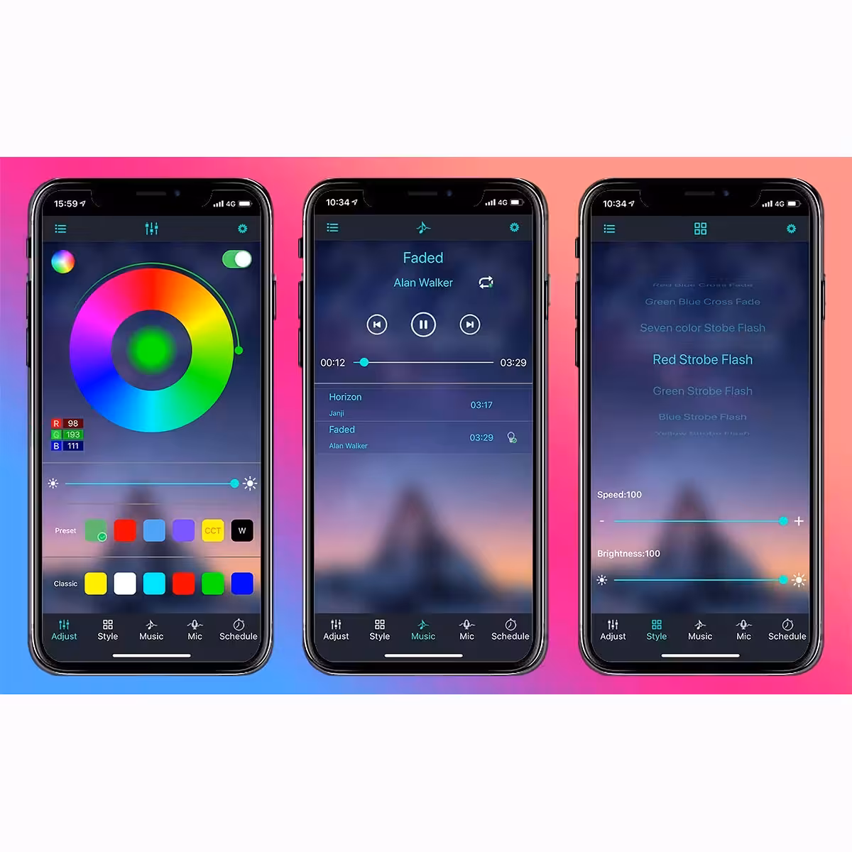 - 20 colores estáticos y 21 modos dinámicos de cambio de color