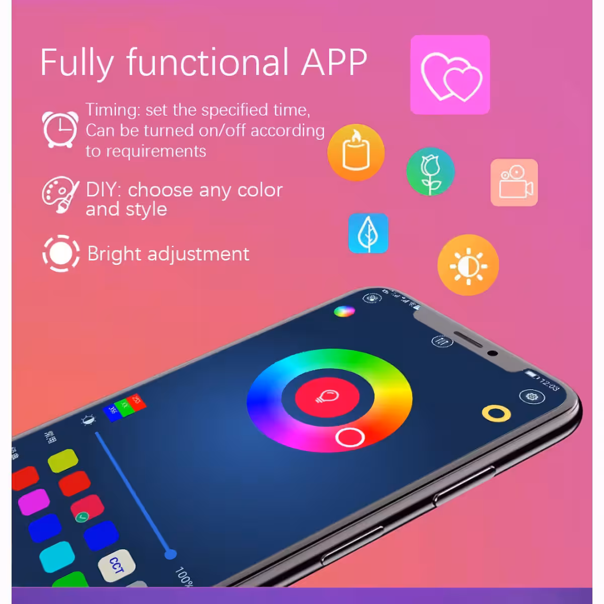 La instalación es rápida y sencilla gracias a la cinta adhesiva en la parte posterior, que permite fijarla en cualquier superficie lisa. La longitud de la cinta LED es de 10 metros, y puede ajustarse cortándola a la medida deseada.