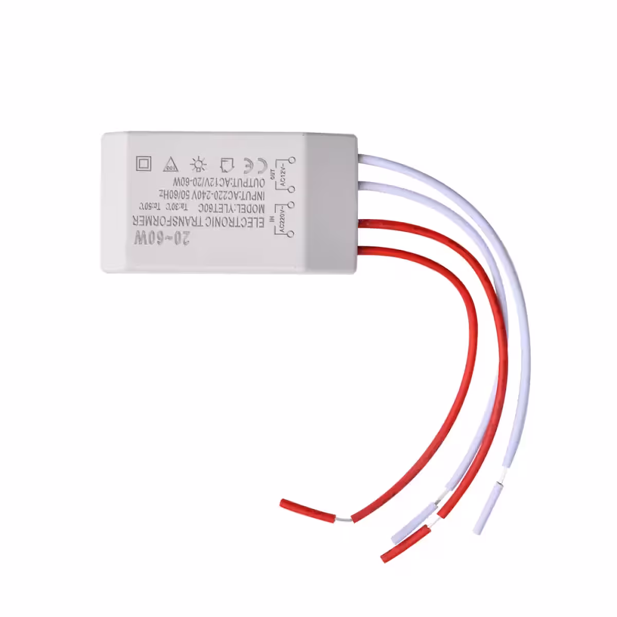 El transformador ofrece una potencia variable entre 20W y 60W, siendo adecuado para sistemas de iluminación pequeños y medianos de baja tensión. Su diseño compacto facilita la integración en cualquier instalación eléctrica.