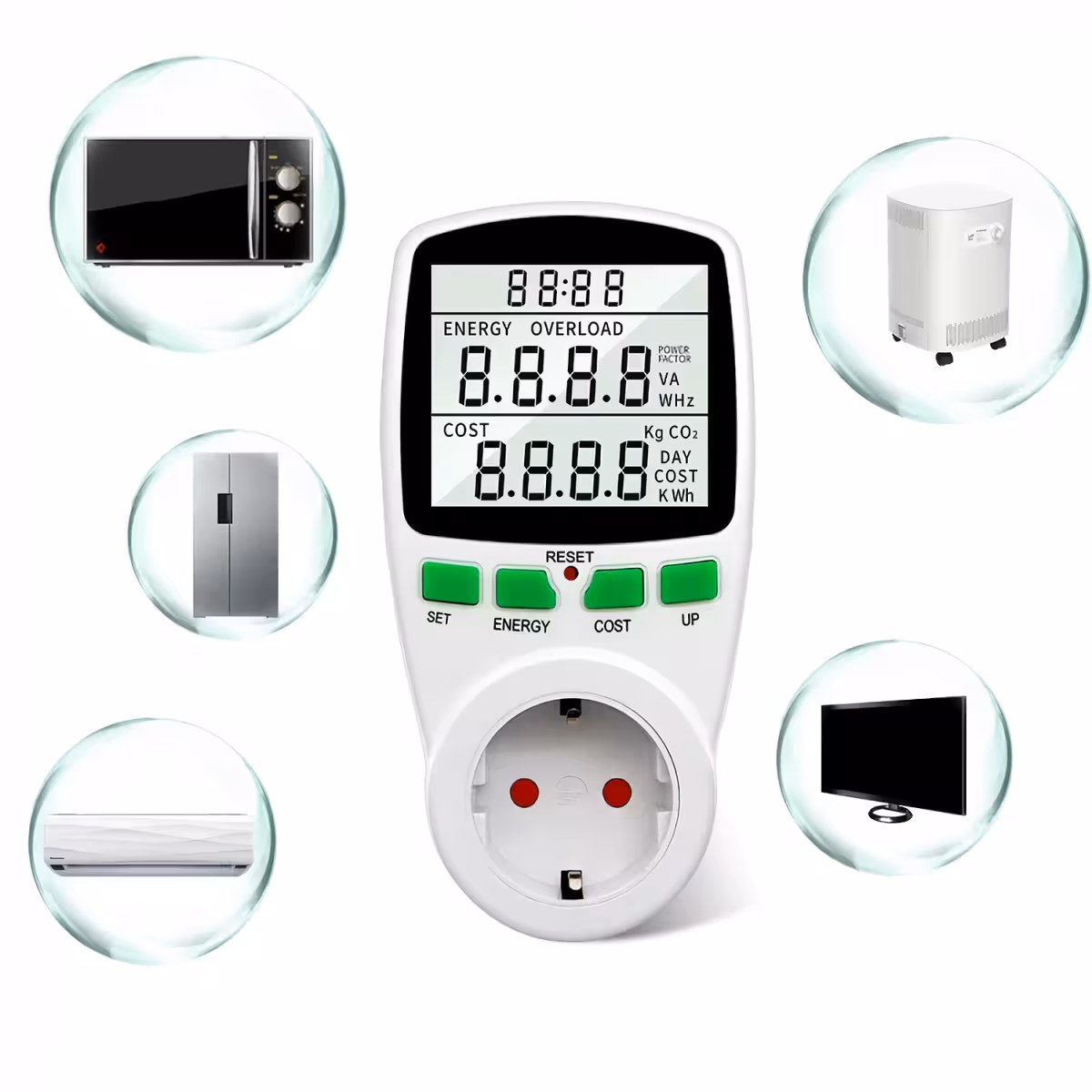 Este vatímetro permite medir con precisión los parámetros eléctricos de cualquier dispositivo conectado a la toma de corriente. Monitorea el consumo real de energía eléctrica de los aparatos en tu hogar u oficina para optimizar los costos.